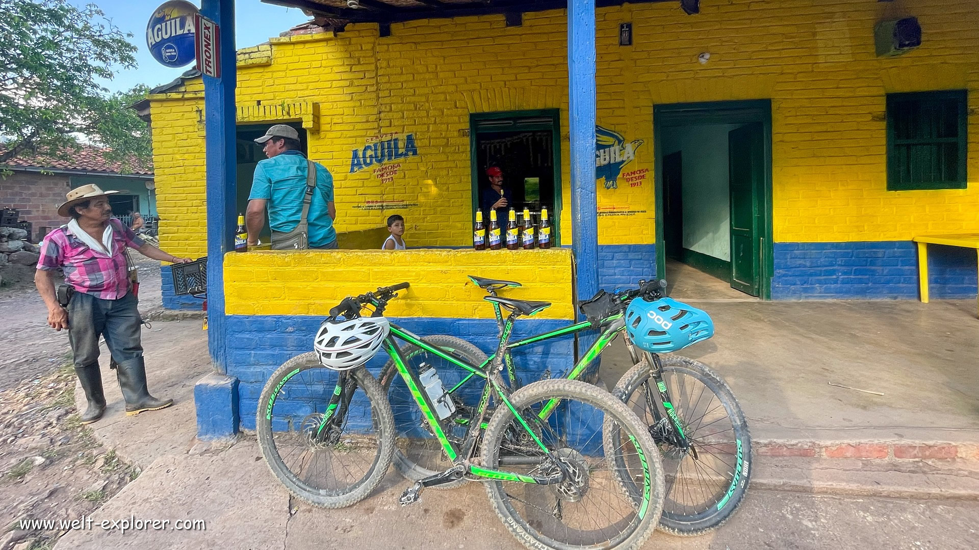 Trotz der gestern geleerten Flasche Rum, steigen wir am nächsten Tag voller Tatendrang auf die Räder. Die Biketour durch die Schluchten des Rio Magdalena im hügeligen Hinterland von San Agustin ist der Hammer. Die Landschaft geizt nicht mit Reizen, wir kurven mitten durch Kaffeeplantagen und den tropischen Wald. Riesige Wasserfälle plätschern in die Tiefe. Die Naturwege und Trails lassen uns mal Blut schwitzen beim Aufstieg, mal Downhill-Fun genießen bei der Abfahrt. So soll es sein!